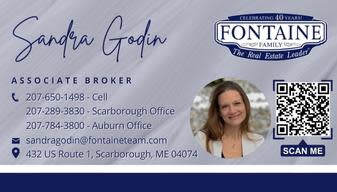 Sandra Godin Back to Search Sandra Godin Fontaine Family - The Real Est (207) 650-1498 (207) 289-3830 Send Email Contacts Primary Fontaine Family - The Real Est Share × Print Email Facebook LinkedIn X Pinterest Powered By GrowthZone